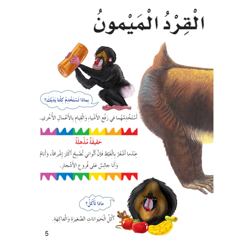 كتاب القرود، يعرف القرود بأنها حيوانات ثديية ذكية لديها القدرة على التعلم والتقليد، وتتفاوت في أحجامها وأشكالها وألوانها، يقدم هذا الكتاب المعلومات الأساسية عن القرود على شكل أسئلة وأجوبة، تشبع فضول القارئ الصغير، وتجيب عن استفساراته.