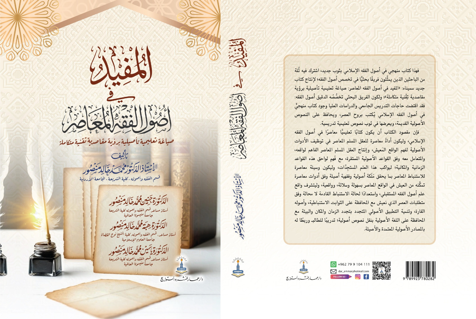 يأتي هذا الكتاب «المفيد في أصول الفقه المعاصر » ليملأ فراغًا تربويًا علميًا عميقًا، ويقدّم طرحًا أصيلًا يجمع بين صفاء أصول الفقه الشرعي وواقعية التطبيق المعاصر ، في زمن كثرت فيه الملهيات وقلّ فيه الزاد الروحي. فقد أحسن المؤلفون اختيار العنوان، وأجادوا في المضمون، وربطوا بين أصول الفقه الإسلامي والتطبيق الواقعي ربطًا متينًا يعيد للفقه أصالته الثابتة ومرونته الشاملة لمستجدات العصر.