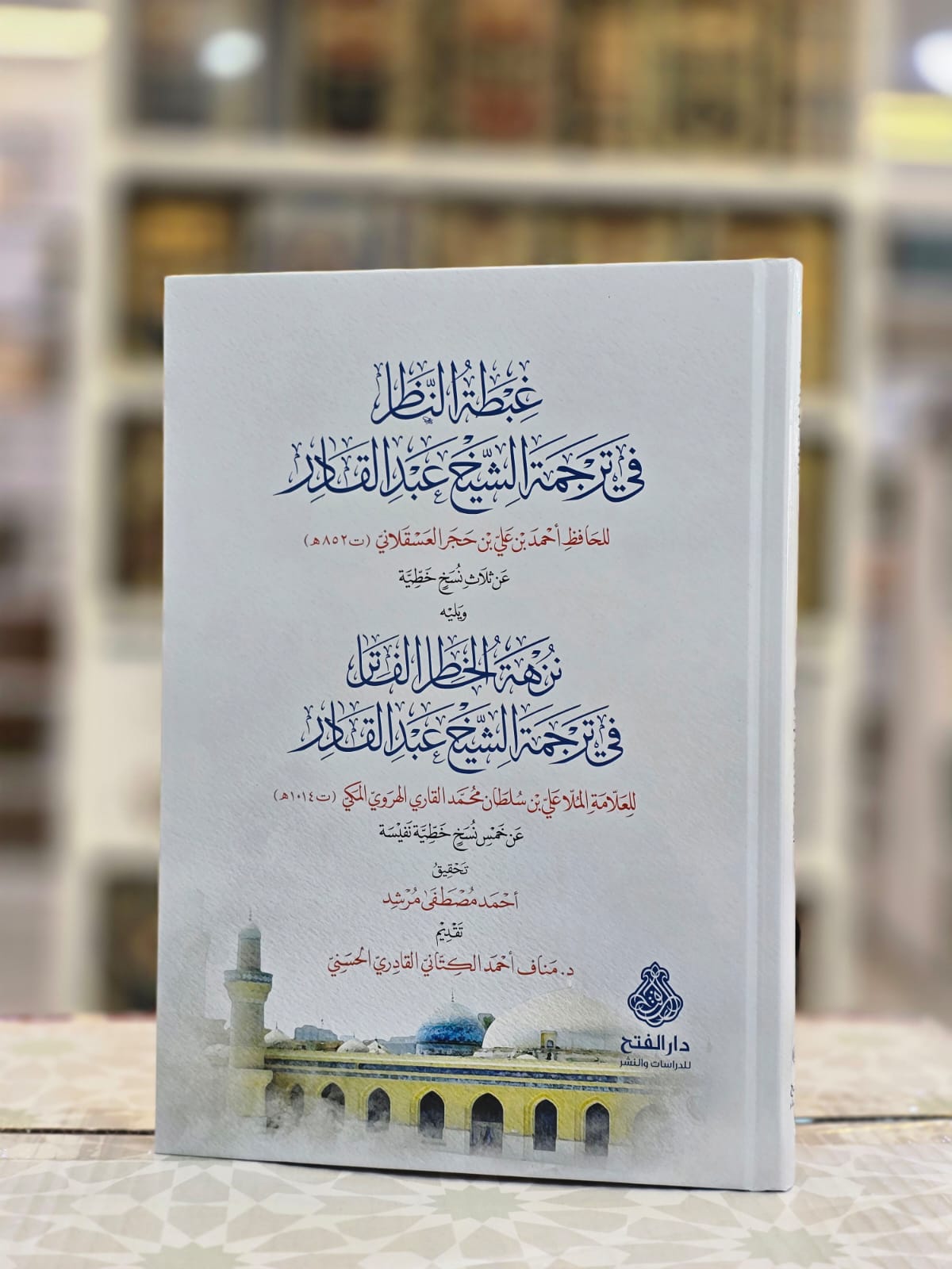 يقول إدوارد دنيسون روس: إنّ هذه الرسالة في ترجمة الشيخ عبد القادر الجيلاني من الكتب النادرة التي وجدتها في دار الكتب للمولوي خدابخش في بلدة بنكيبور، وإن كان إسم الكتاب وإسم مصنفه غير مذكور في المتن أعني متى تفحصت وجدت الكاتب قد كتب في الصفحة الأولى ما يخبرنا بهذين الحالين وهو هذا: غبطة الناظر في ترجمة الشيخ عبد القادر، تأليف شيخ الإسلام إبن حجر. ولهذا يحتمل أن هذا المصنف لإن حجر العسقلاني، ولكنّ مع كثرة التصنيفات المشهورة له لم أجد هذه الرسالة في تعدادها، ومع وجود كتب كثيرة في مناقب الشيخ عبد القادر، لن أر ذكرها أبداً، ولما كان هذا الكتاب فريداً ولم توجد نسخة أخرى في هذا الزمن أردت نشرها حتى تكون معروفة بين الناس، فرأيتني مميلاً إلى هذا الأمر لكون أكثر أصدقائي من مسلمي الهند حنفيّين وقادريّين، وظننت بأن يكون إخراج هذا الكتاب ونشره لقلوبهم مقبولاً ولنفسوهم مرغوباً، فشمرت أذيالي لهذا العمل.