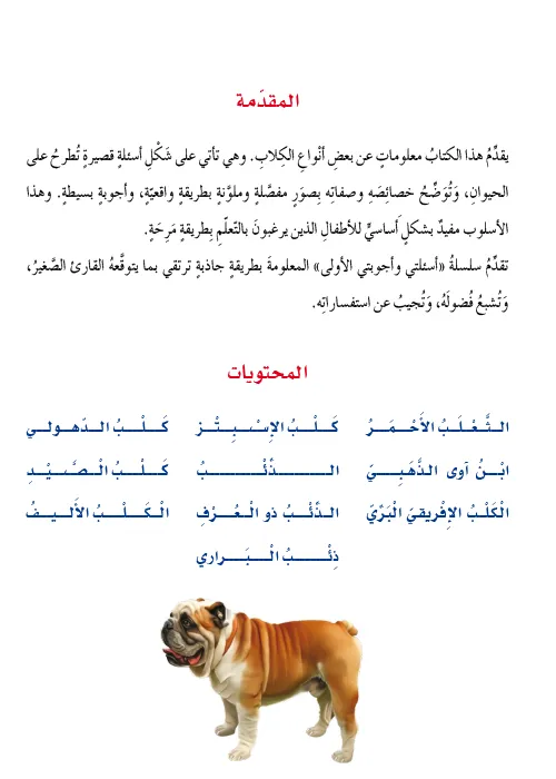 يقدم كتاب الكلاب معلومات عن بعض أنواع الكلاب. وهي تأتي على شكل أسئلة تطرح على الحيوان وتوضح خصائصه وصفاته بصور مفصلة وملونة بطريقة واقعية، وأجوبة بسيطة، تشبع فضول القارئ الصغير، وتجيب عن استفساراته.