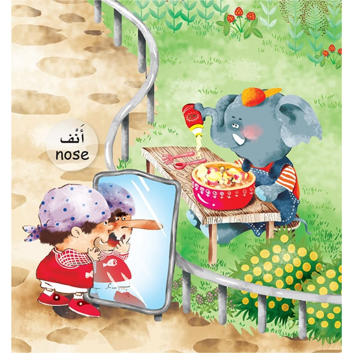 قصة قصيرة موجهة للأطفال الصغار تعرفهم بأجزاء الجسم باللغتين العربية والإنجليزية عن طريق رامي -بطل سلسلة عالمي الصغير- ومرآته السحرية.