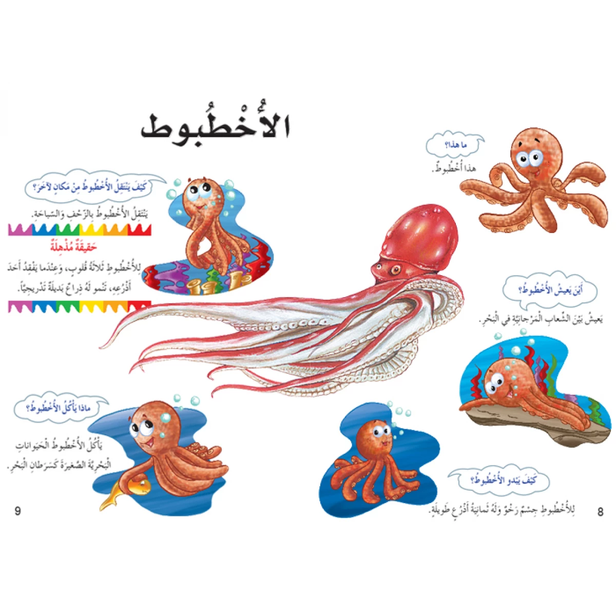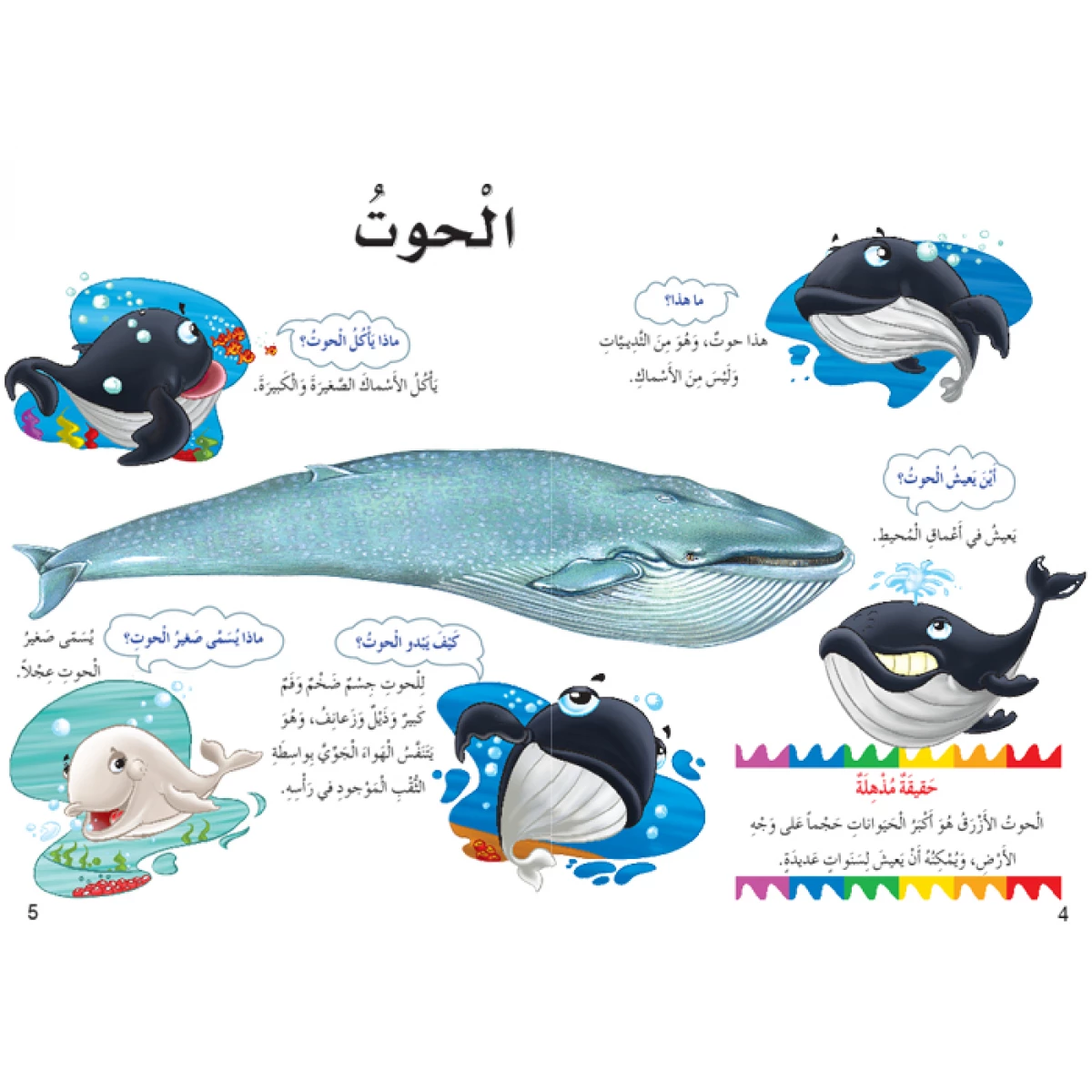 يقدم كتاب الحيوانات البحرية معلومات عن بعض الحيوانات البحرية. وتأتي المعلومات على شكل أسئلة قصيرة تطرح على الحيوان وتوضح خصائصه وصفاته بصور مفصلة وملونة بطريقة واقعية، وأجوبة بسيطة، تشبع فضول القارئ الصغير، وتجيب عن استفساراته.