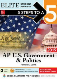 MATCHES THE REDESIGNED EXAM! The popular, user friendly guide that has helped millions of students prepare for the AP U.S. Government & Politics Exam-now updated with unparalleled digital access and new material to match the latest exam 5 Steps to a 5: AP U.S. Government & Politics 2019 Elite Student's Edition is an accessible, easy-to-follow guide that introduces an effective 5-step study plan to help students build the skills, knowledge, and test-taking confidence they need to reach their full potential. 3 practice exams covering the latest course syllabus and reflecting the current version of the exam are included. The Elite Edition features a "5 Minutes to a 5" section-an additional 180 questions and activities designed to reinforce the most important AP concepts and presented in a day-by-day format. Score-Raising Features Include: *3 full-length practice exams, matching the latest exam format!*Hundreds of practice exercises with thorough answer explanations*Comprehensive overview of the latest AP U.S. Government exam format *Authentic practice questions that reflect both multiple-choice and free-response question types, just like the ones you will see on test day, along with detailed answer explanations and sample responses*Addresses all topics at the depth and in the style required for the AP U.S. Government exam*Proven strategies specific to each section of the test BONUS Cross-Platform Prep Course for extra practice exams with personalized study plans, interactive tests, powerful analytics and progress charts, flashcards, games, and more! (see inside front and back covers for details) 5 MINUTES TO A 5 section: 180 Questions and Activities that give you an extra 5 minutes of review for every day of the school year, reinforcing the most vital course material and building the skills and confidence you need to succeed on the AP exam The 5-Step Plan: Step 1: Set up your study plan with three model schedulesStep 2: Determine your readiness with an AP-style Diagnostic ExamStep 3: Develop the strategies that will give you the edge on test dayStep 4: Review the terms and concepts you need to achieve your highest scoreStep 5: Build your confidence with full-length practice exams show more